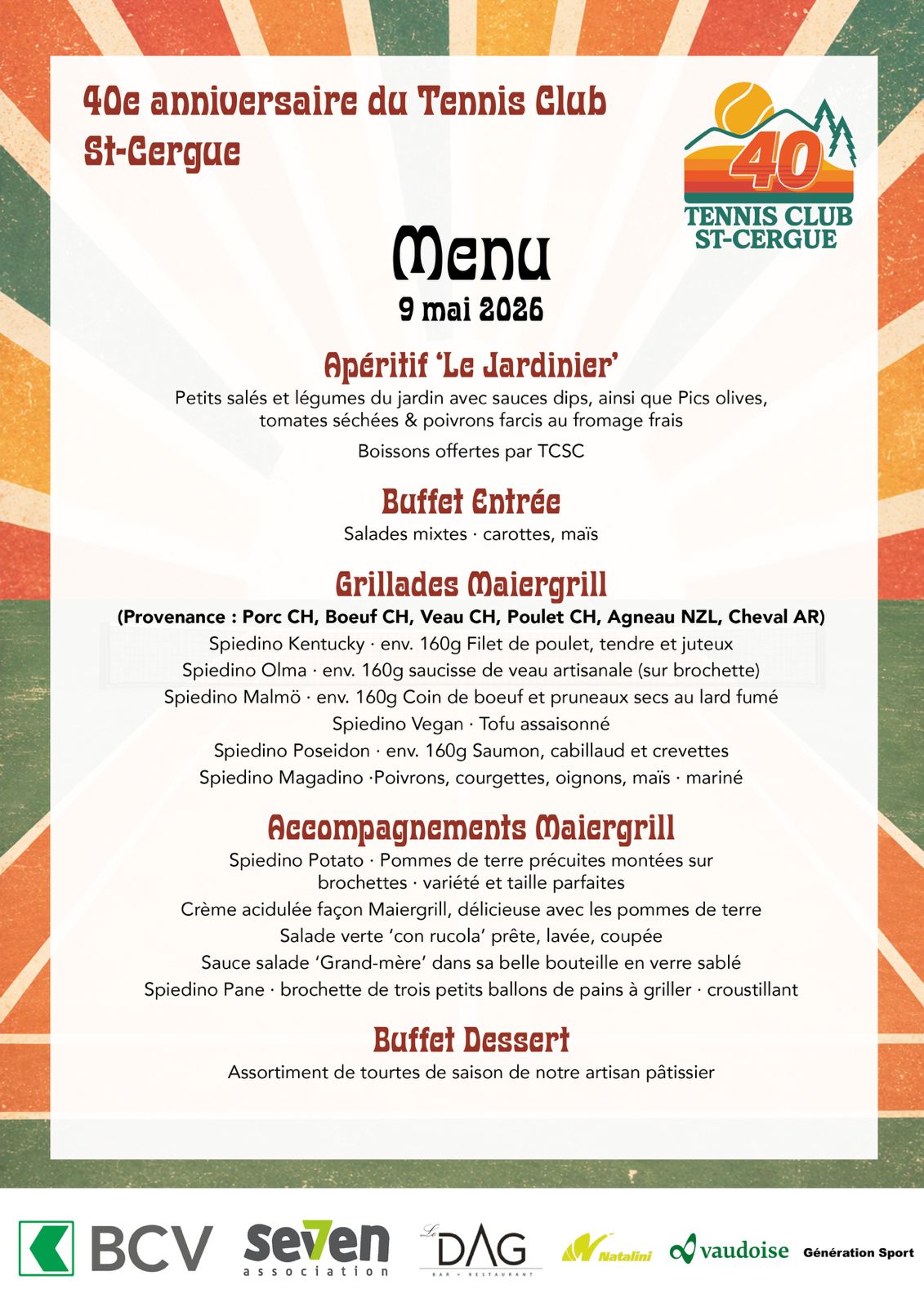 Forty years of rallies, hard-fought matches, shared laughter, and moments spent on and around the courts. This year, the Tennis Club of St-Cergue celebrates its 40th anniversary and invites you to a festive weekend on 9 and 10 May, open to everyone.